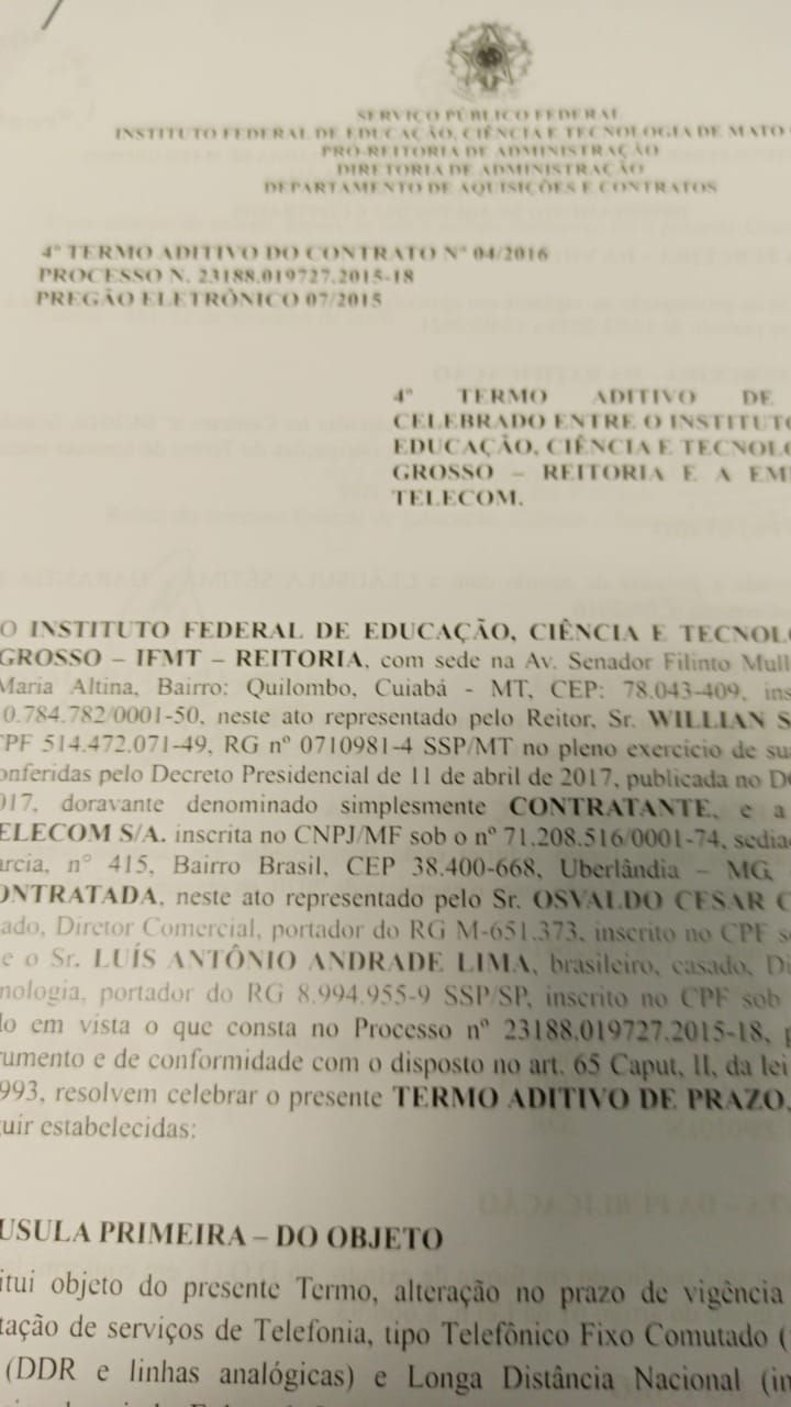 - Contratação de serviços de Telefonia, tipo Telefônico Fixo Comutado (fixo-fixo e fixo-móvel), Local (DDR e linhas analógicas) e Longa Distância Nacional (intra e inter-regional) e Internacional, e ainda, Enlace de Internet (link dedicado e não dedicado), para o Instituto Federal de Educação, Ciência e Tecnologia de Mato Grosso, que serão prestados nas condições estabelecidas no Termo de Referência, anexo do Edital. EMPENHO 2019NE800042